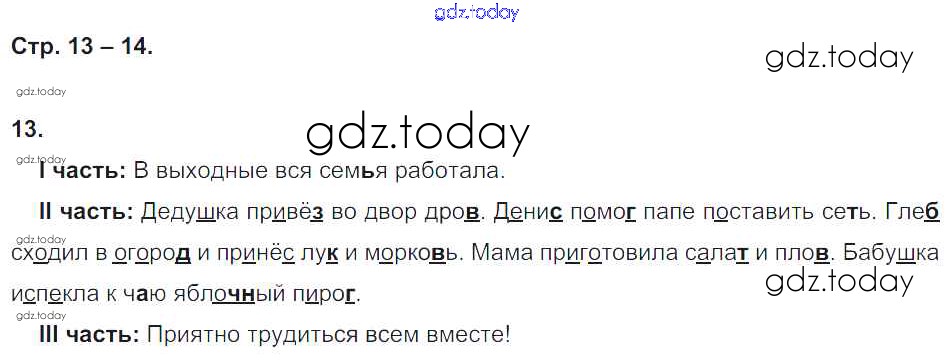На страницах сайта gdz.today вы найдете учебный и вспомогательный материал, направленный на улучшения знаний школьной программы. ГДЗ - онлайн мир знаний Решение к части 2. Страницы 13 Рабочей тетради по Русскому языку для 2 класса Песняева, Анащенкова Просвещение 2020