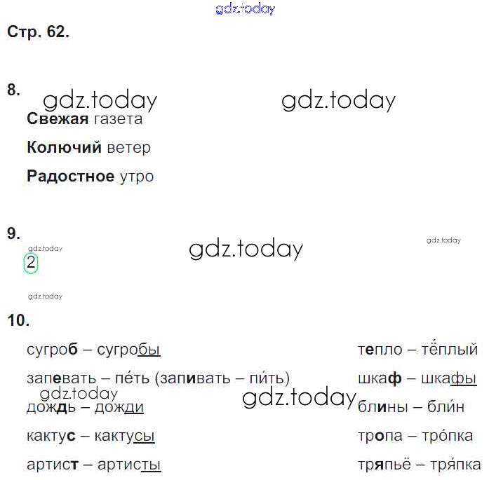 На страницах сайта gdz.today вы найдете учебный и вспомогательный материал, направленный на улучшения знаний школьной программы. ГДЗ - онлайн мир знаний Решение к части 2. Страницы 62 Рабочей тетради по Русскому языку для 2 класса Песняева, Анащенкова Просвещение 2020