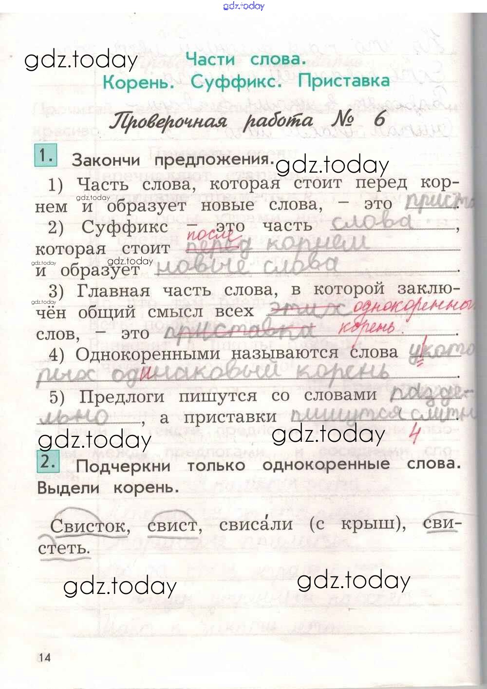 На страницах сайта gdz.today вы найдете учебный и вспомогательный материал, направленный на улучшения знаний школьной программы. ГДЗ - онлайн мир знаний Страницы (решение) 14 Проверочным и контрольным работам по Русскому языку для 2 класса Бунеева Баласс Школа 2100 2017