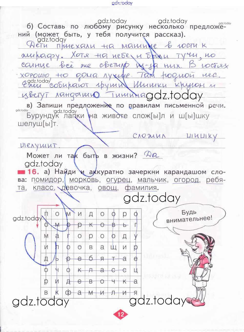На страницах сайта gdz.today вы найдете учебный и вспомогательный материал, направленный на улучшения знаний школьной программы. ГДЗ - онлайн мир знаний Решение к части 1. Страницы 12 Рабочей тетради по Русскому языку для 2 класса Яковлева Фёдоров 2015