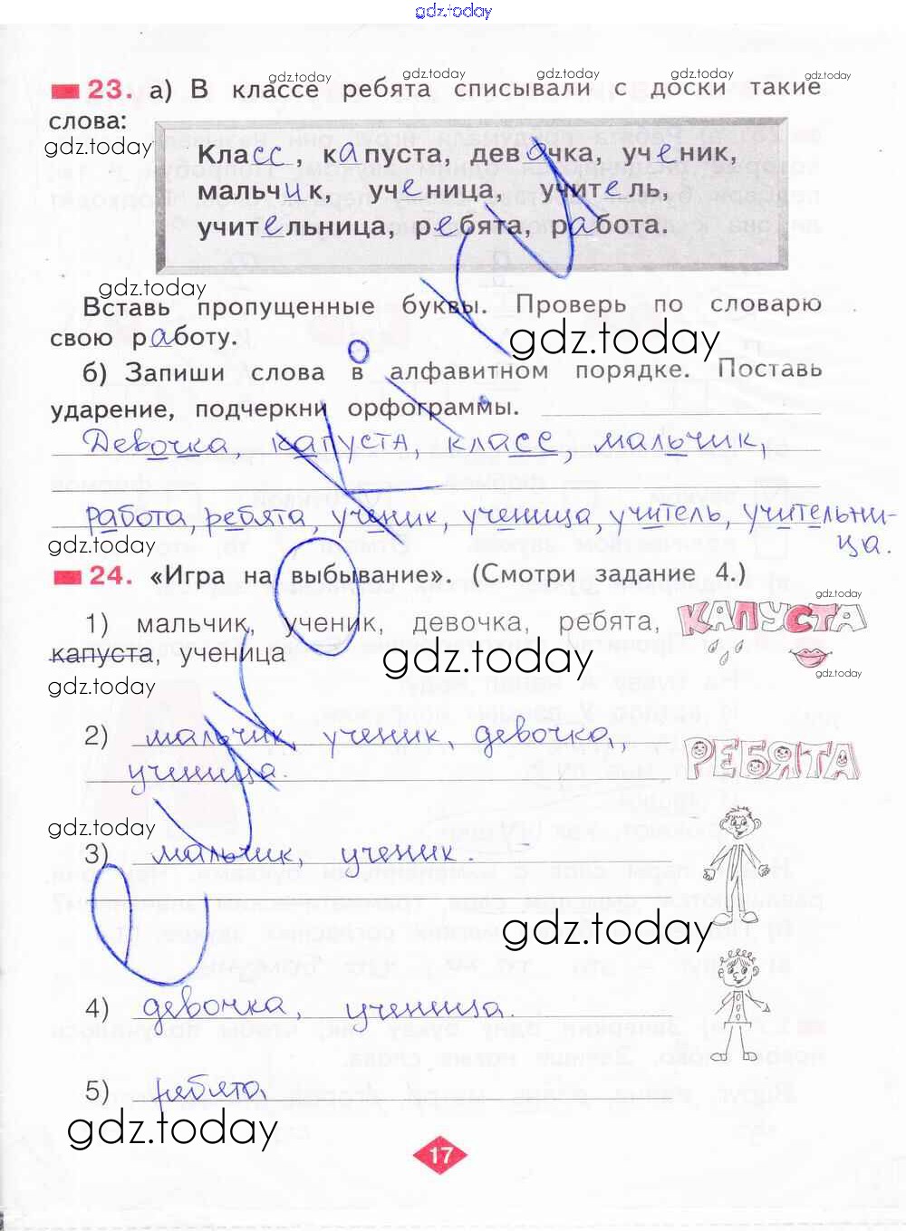 На страницах сайта gdz.today вы найдете учебный и вспомогательный материал, направленный на улучшения знаний школьной программы. ГДЗ - онлайн мир знаний Решение к части 1. Страницы 17 Рабочей тетради по Русскому языку для 2 класса Яковлева Фёдоров 2015