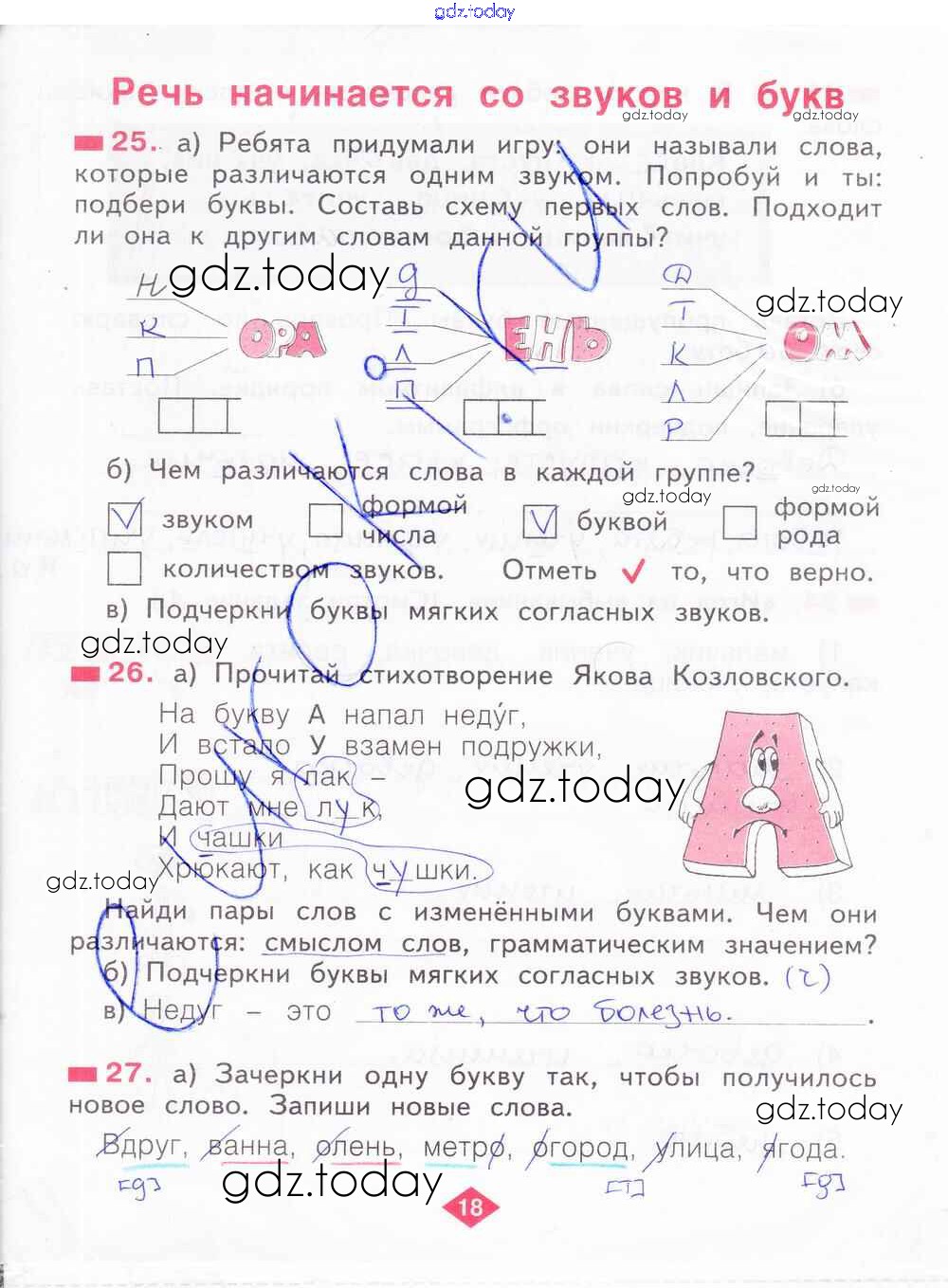 На страницах сайта gdz.today вы найдете учебный и вспомогательный материал, направленный на улучшения знаний школьной программы. ГДЗ - онлайн мир знаний Решение к части 1. Страницы 18 Рабочей тетради по Русскому языку для 2 класса Яковлева Фёдоров 2015