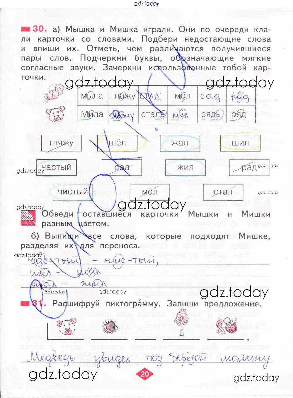На страницах сайта gdz.today вы найдете учебный и вспомогательный материал, направленный на улучшения знаний школьной программы. ГДЗ - онлайн мир знаний Решение к части 1. Страницы 20 Рабочей тетради по Русскому языку для 2 класса Яковлева Фёдоров 2015