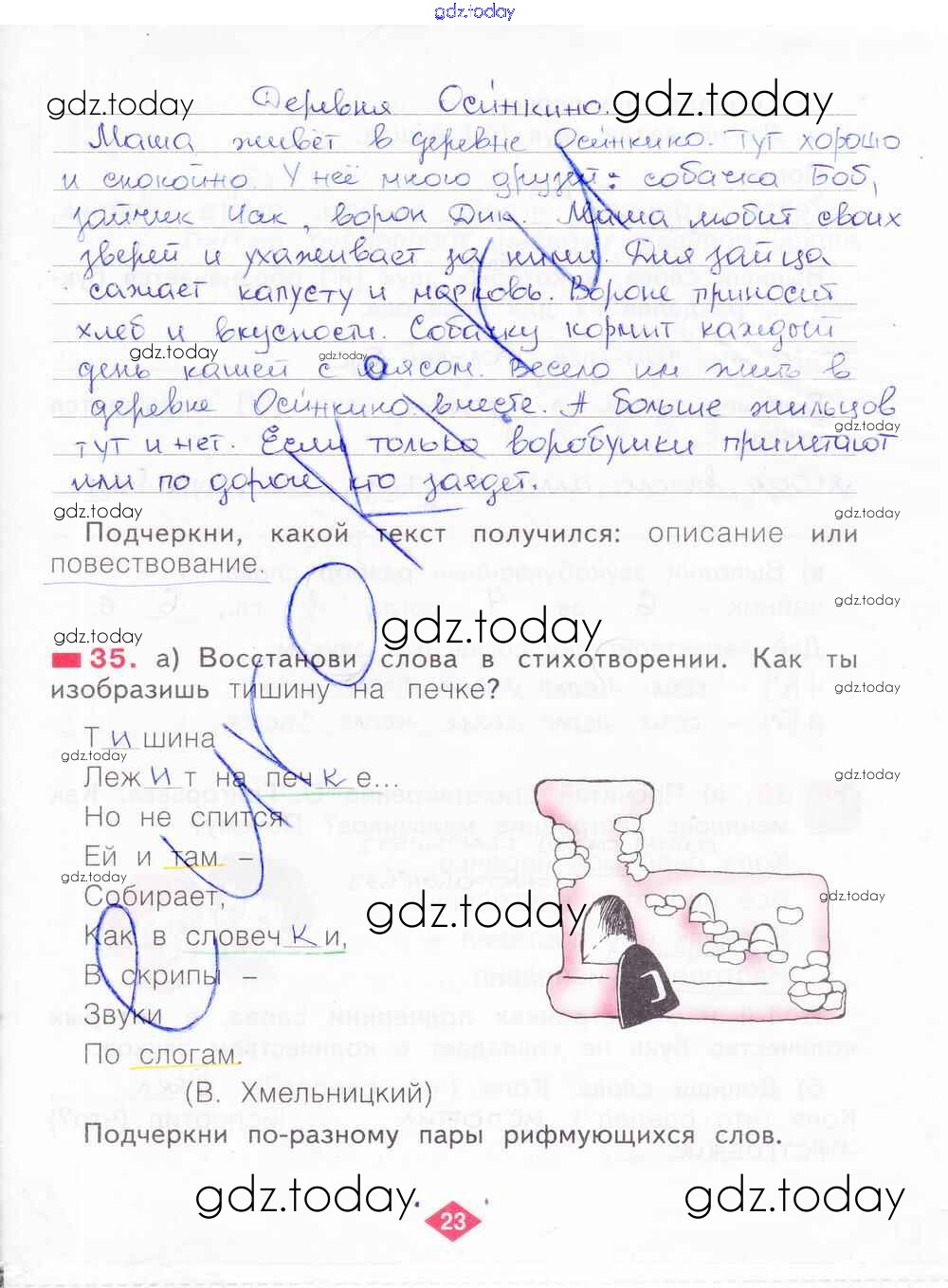 На страницах сайта gdz.today вы найдете учебный и вспомогательный материал, направленный на улучшения знаний школьной программы. ГДЗ - онлайн мир знаний Решение к части 1. Страницы 23 Рабочей тетради по Русскому языку для 2 класса Яковлева Фёдоров 2015