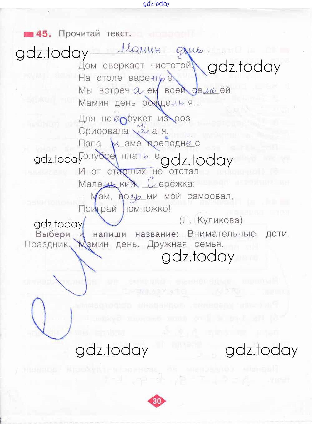 На страницах сайта gdz.today вы найдете учебный и вспомогательный материал, направленный на улучшения знаний школьной программы. ГДЗ - онлайн мир знаний Решение к части 1. Страницы 30 Рабочей тетради по Русскому языку для 2 класса Яковлева Фёдоров 2015