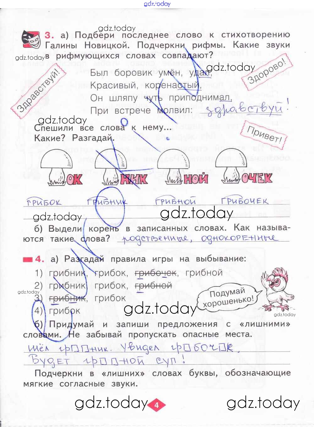 На страницах сайта gdz.today вы найдете учебный и вспомогательный материал, направленный на улучшения знаний школьной программы. ГДЗ - онлайн мир знаний Решение к части 1. Страницы 4 Рабочей тетради по Русскому языку для 2 класса Яковлева Фёдоров 2015
