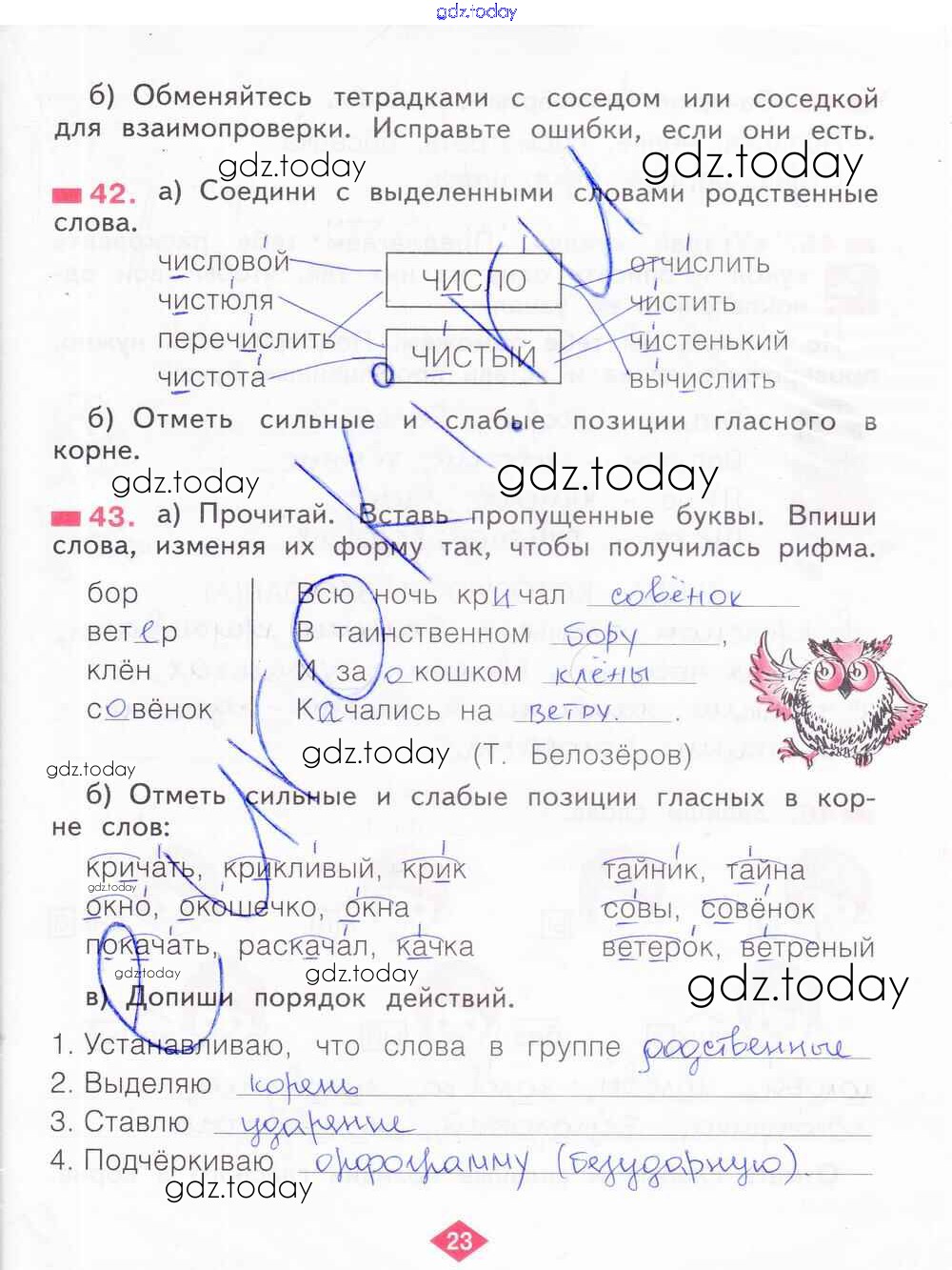 На страницах сайта gdz.today вы найдете учебный и вспомогательный материал, направленный на улучшения знаний школьной программы. ГДЗ - онлайн мир знаний Решение к части 2. Страницы 23 Рабочей тетради по Русскому языку для 2 класса Яковлева Фёдоров 2015