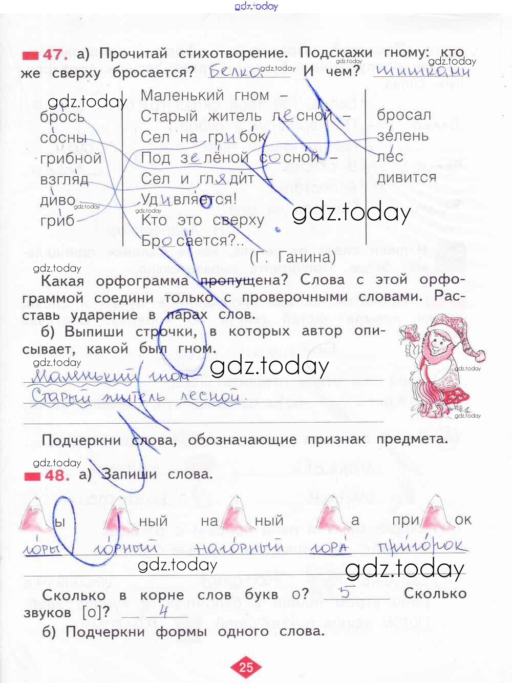 На страницах сайта gdz.today вы найдете учебный и вспомогательный материал, направленный на улучшения знаний школьной программы. ГДЗ - онлайн мир знаний Решение к части 2. Страницы 25 Рабочей тетради по Русскому языку для 2 класса Яковлева Фёдоров 2015