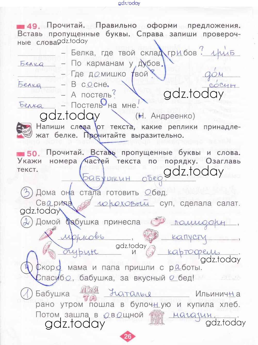 На страницах сайта gdz.today вы найдете учебный и вспомогательный материал, направленный на улучшения знаний школьной программы. ГДЗ - онлайн мир знаний Решение к части 2. Страницы 26 Рабочей тетради по Русскому языку для 2 класса Яковлева Фёдоров 2015