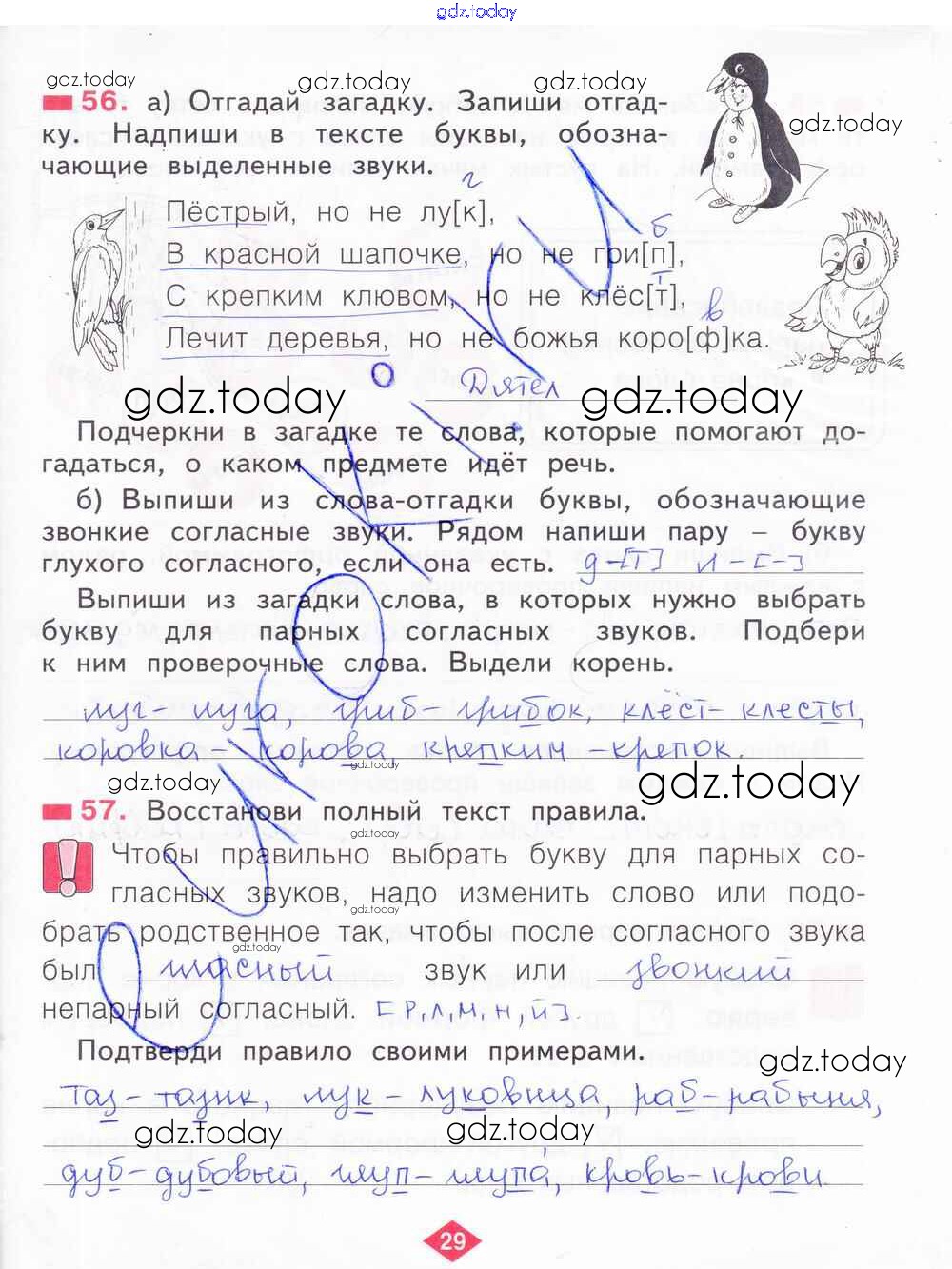 На страницах сайта gdz.today вы найдете учебный и вспомогательный материал, направленный на улучшения знаний школьной программы. ГДЗ - онлайн мир знаний Решение к части 2. Страницы 29 Рабочей тетради по Русскому языку для 2 класса Яковлева Фёдоров 2015