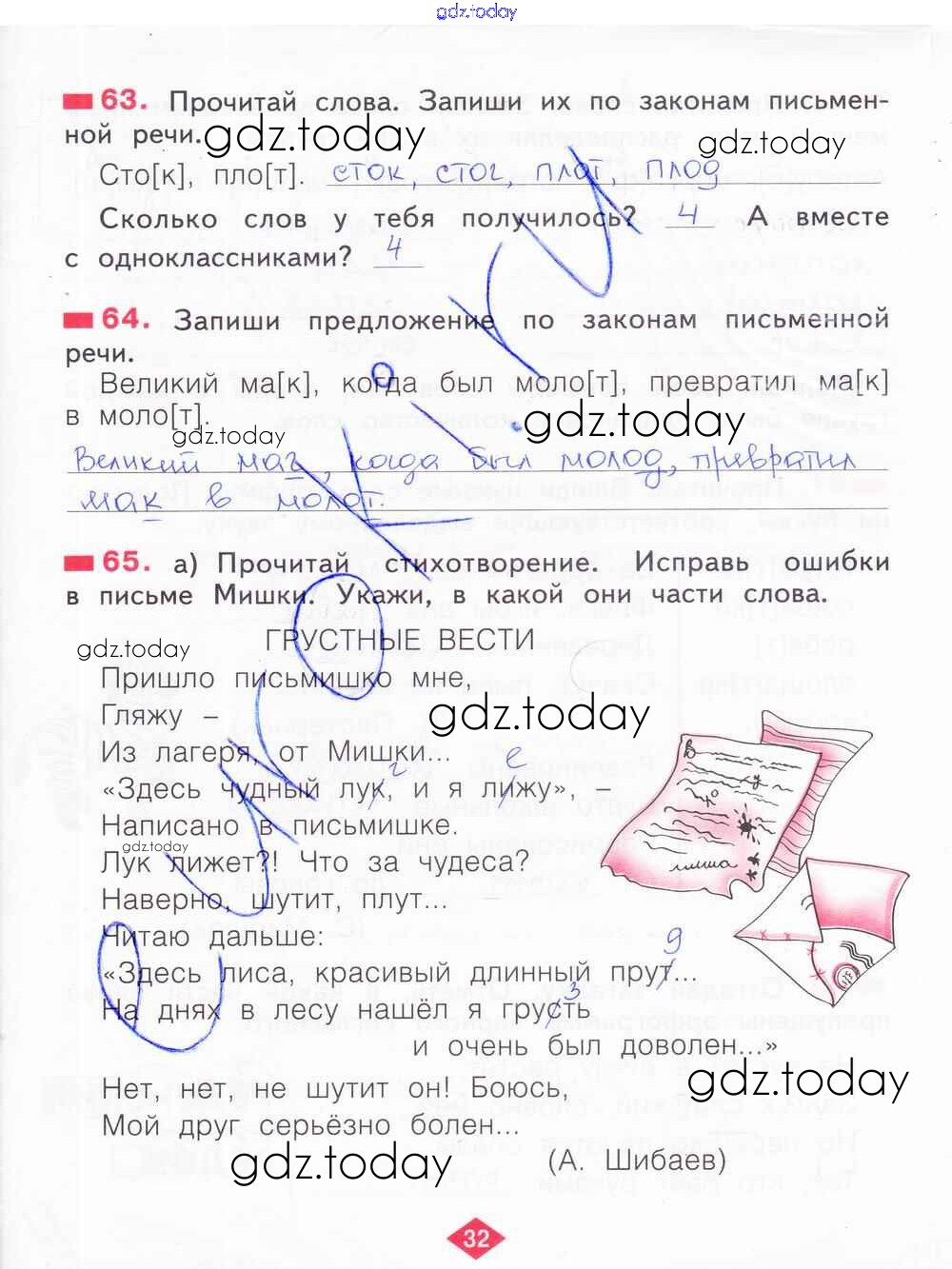 На страницах сайта gdz.today вы найдете учебный и вспомогательный материал, направленный на улучшения знаний школьной программы. ГДЗ - онлайн мир знаний Решение к части 2. Страницы 32 Рабочей тетради по Русскому языку для 2 класса Яковлева Фёдоров 2015