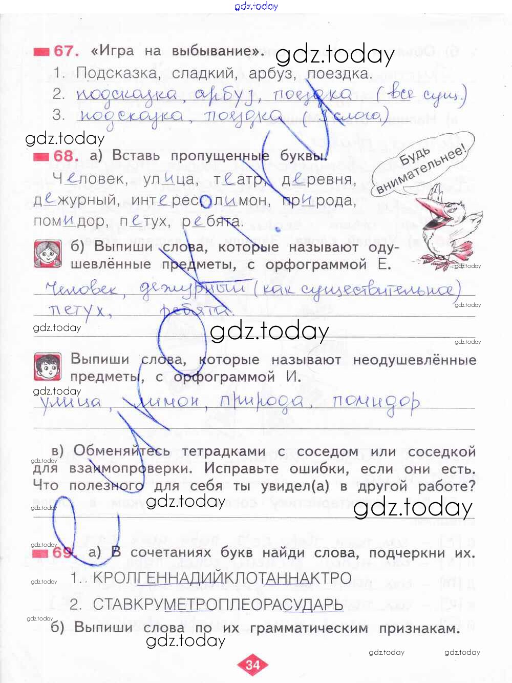 На страницах сайта gdz.today вы найдете учебный и вспомогательный материал, направленный на улучшения знаний школьной программы. ГДЗ - онлайн мир знаний Решение к части 2. Страницы 34 Рабочей тетради по Русскому языку для 2 класса Яковлева Фёдоров 2015