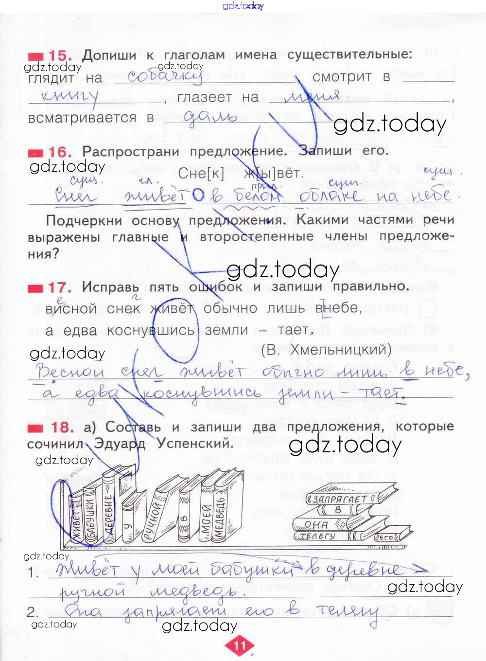 На страницах сайта gdz.today вы найдете учебный и вспомогательный материал, направленный на улучшения знаний школьной программы. ГДЗ - онлайн мир знаний Решение к части 3. Страницы 11 Рабочей тетради по Русскому языку для 2 класса Яковлева Фёдоров 2015