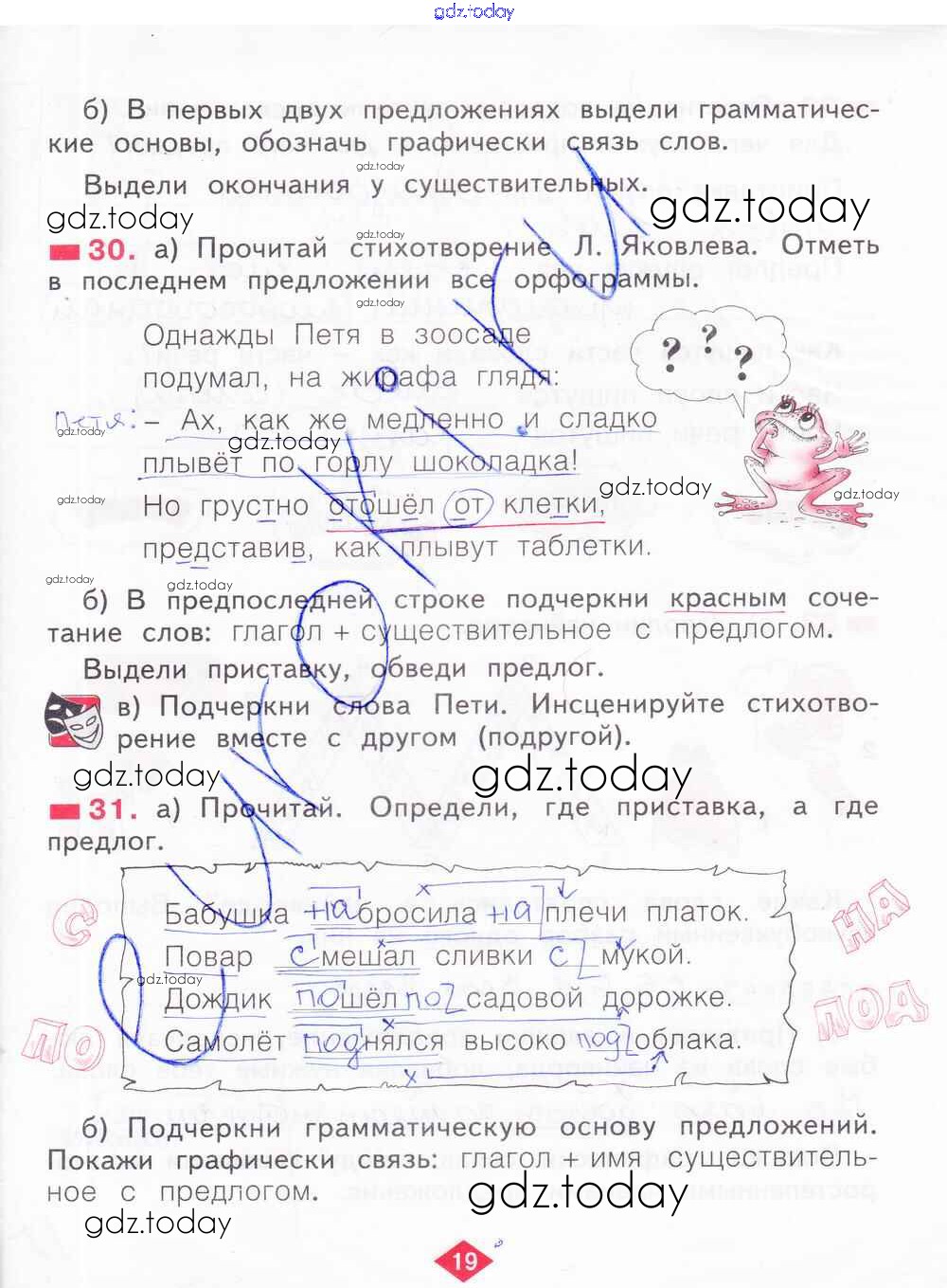 На страницах сайта gdz.today вы найдете учебный и вспомогательный материал, направленный на улучшения знаний школьной программы. ГДЗ - онлайн мир знаний Решение к части 3. Страницы 19 Рабочей тетради по Русскому языку для 2 класса Яковлева Фёдоров 2015