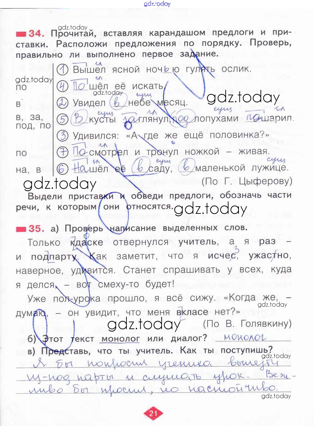 На страницах сайта gdz.today вы найдете учебный и вспомогательный материал, направленный на улучшения знаний школьной программы. ГДЗ - онлайн мир знаний Решение к части 3. Страницы 21 Рабочей тетради по Русскому языку для 2 класса Яковлева Фёдоров 2015