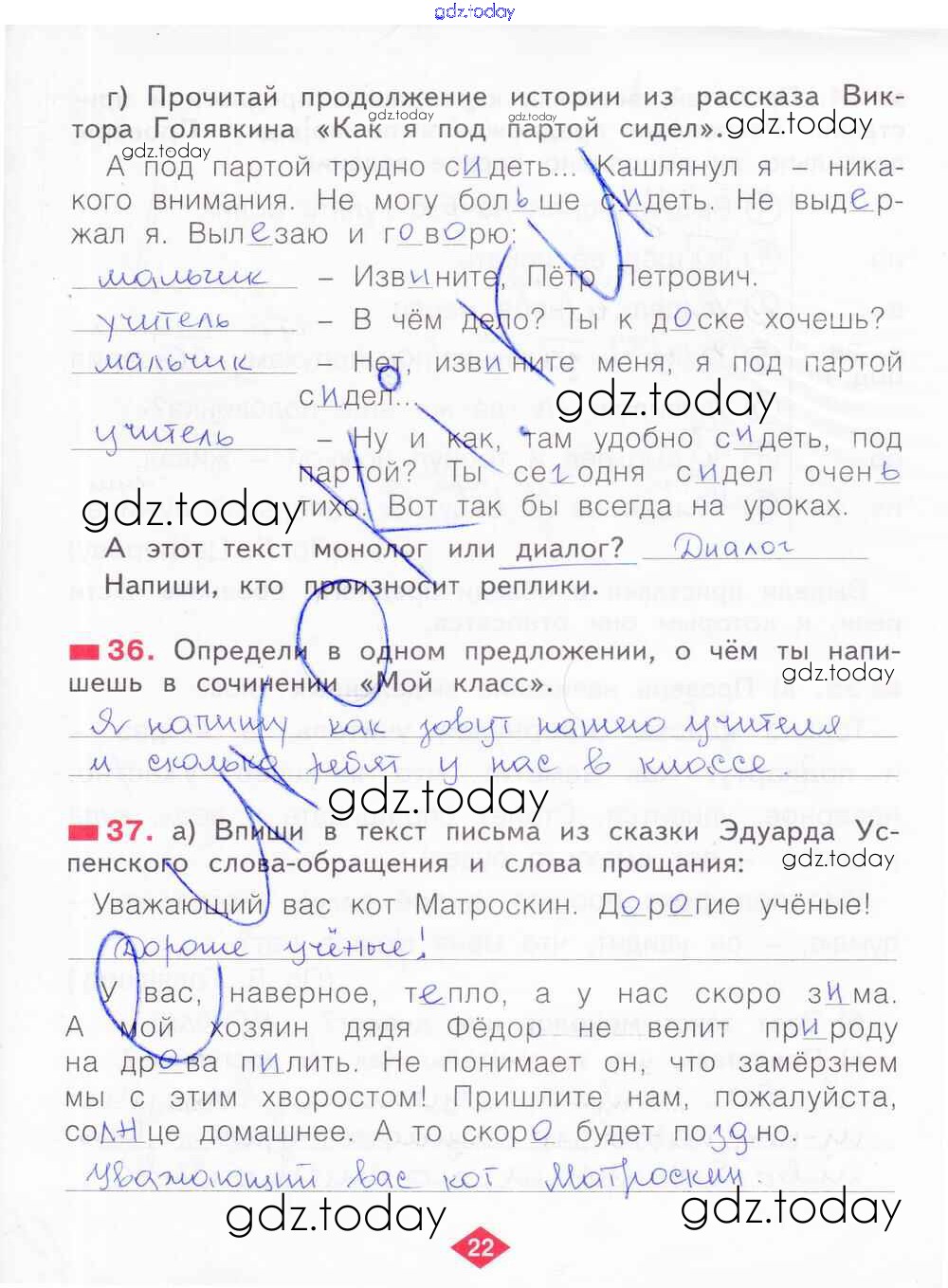 На страницах сайта gdz.today вы найдете учебный и вспомогательный материал, направленный на улучшения знаний школьной программы. ГДЗ - онлайн мир знаний Решение к части 3. Страницы 22 Рабочей тетради по Русскому языку для 2 класса Яковлева Фёдоров 2015
