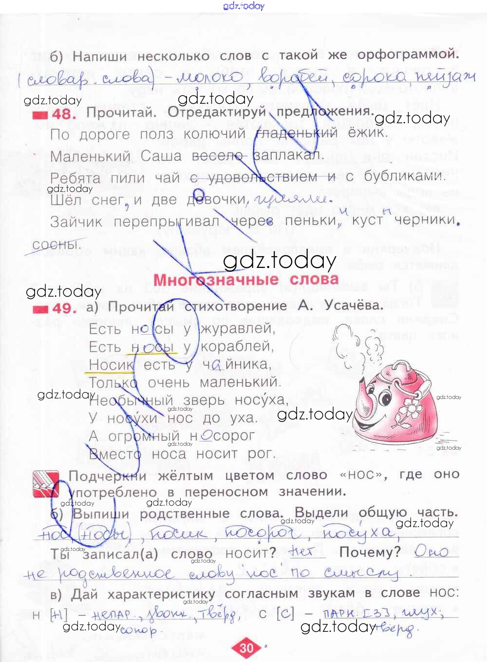 На страницах сайта gdz.today вы найдете учебный и вспомогательный материал, направленный на улучшения знаний школьной программы. ГДЗ - онлайн мир знаний Решение к части 3. Страницы 30 Рабочей тетради по Русскому языку для 2 класса Яковлева Фёдоров 2015