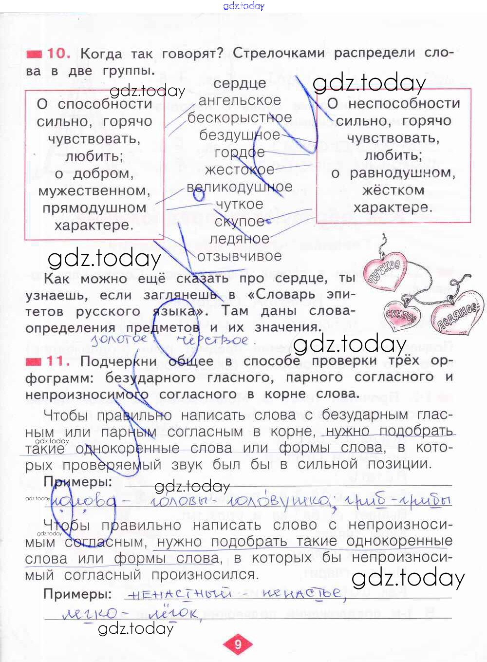 На страницах сайта gdz.today вы найдете учебный и вспомогательный материал, направленный на улучшения знаний школьной программы. ГДЗ - онлайн мир знаний Решение к части 3. Страницы 9 Рабочей тетради по Русскому языку для 2 класса Яковлева Фёдоров 2015