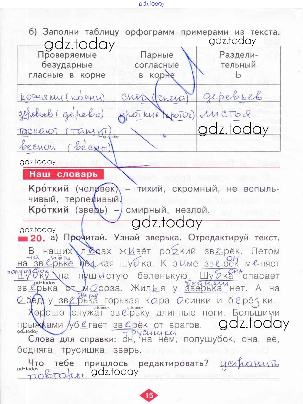 На страницах сайта gdz.today вы найдете учебный и вспомогательный материал, направленный на улучшения знаний школьной программы. ГДЗ - онлайн мир знаний Решение к части 4. Страницы 15 Рабочей тетради по Русскому языку для 2 класса Яковлева Фёдоров 2015