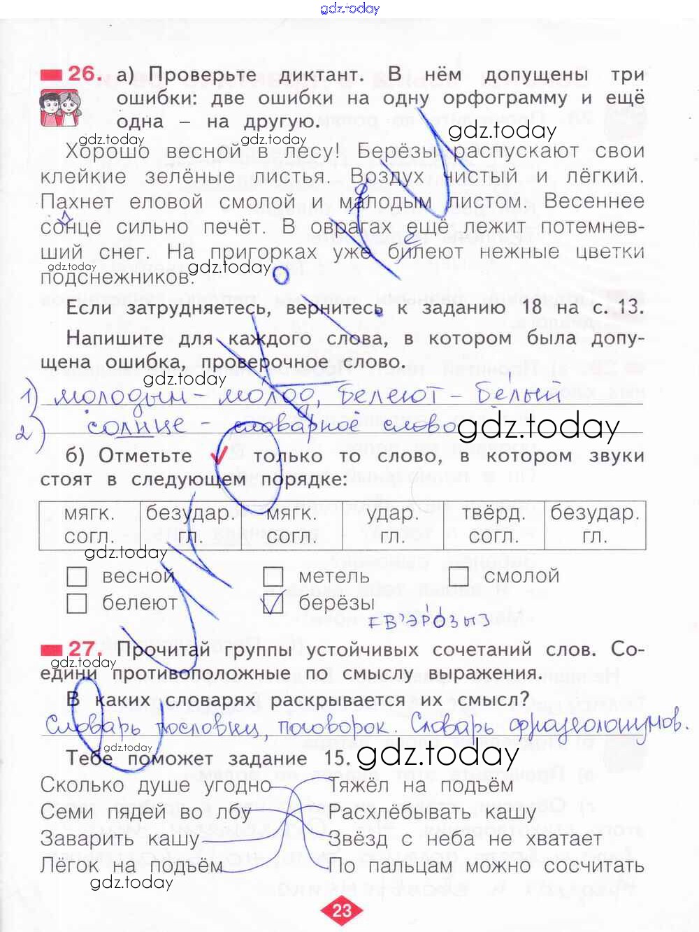 На страницах сайта gdz.today вы найдете учебный и вспомогательный материал, направленный на улучшения знаний школьной программы. ГДЗ - онлайн мир знаний Решение к части 4. Страницы 23 Рабочей тетради по Русскому языку для 2 класса Яковлева Фёдоров 2015