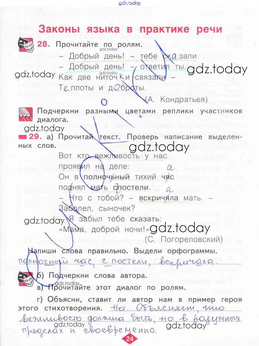 На страницах сайта gdz.today вы найдете учебный и вспомогательный материал, направленный на улучшения знаний школьной программы. ГДЗ - онлайн мир знаний Решение к части 4. Страницы 24 Рабочей тетради по Русскому языку для 2 класса Яковлева Фёдоров 2015