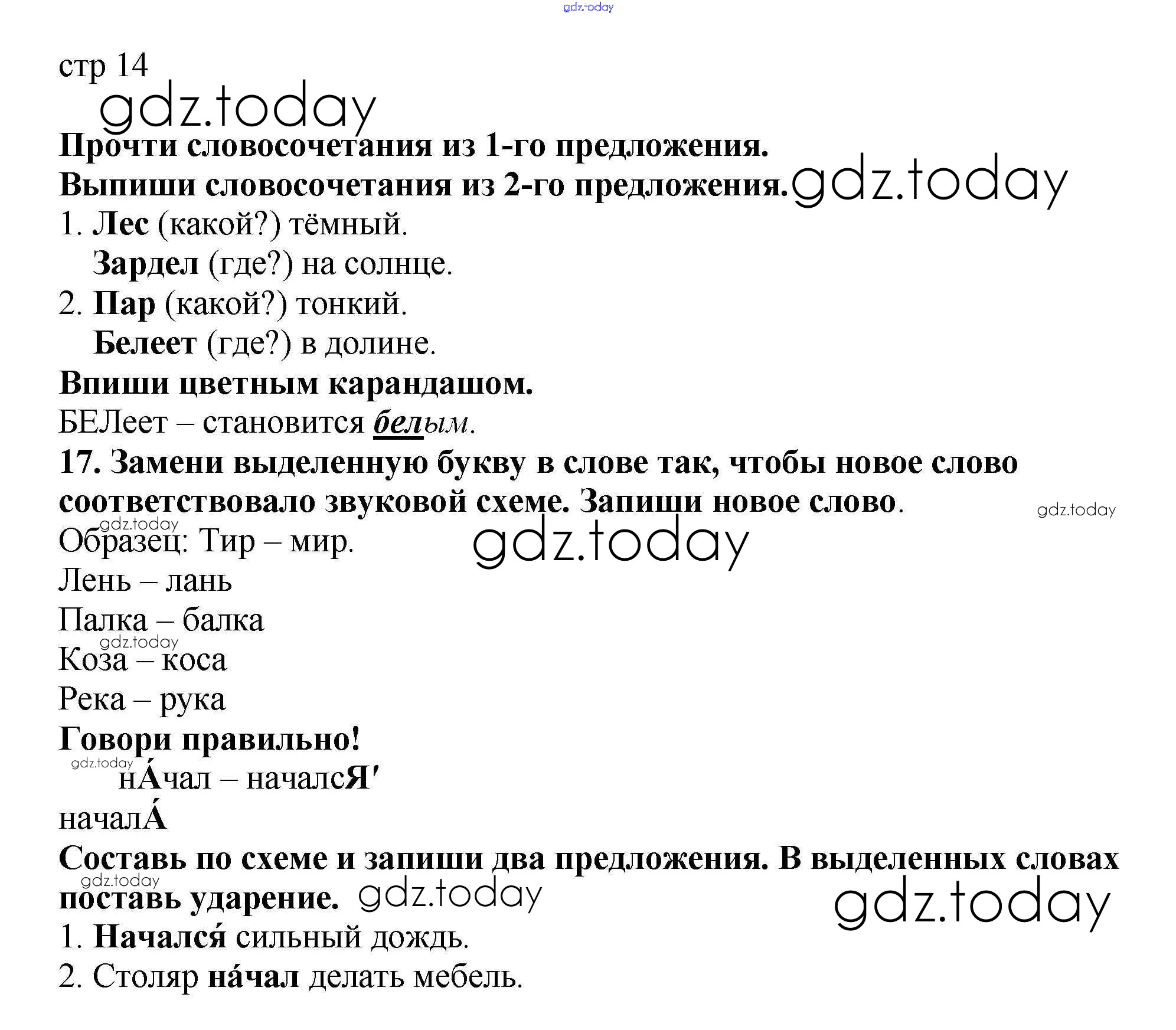 На страницах сайта gdz.today вы найдете учебный и вспомогательный материал, направленный на улучшения знаний школьной программы. ГДЗ - онлайн мир знаний Решение к части 1. Страницы 14 Тетради для самостоятельной работы по Русскому языку для 2 класса Байкова, Малаховская Академкнига 2017