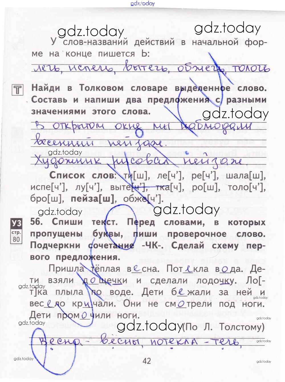 На страницах сайта gdz.today вы найдете учебный и вспомогательный материал, направленный на улучшения знаний школьной программы. ГДЗ - онлайн мир знаний Решение к части 2. Страницы 42 Тетради для самостоятельной работы по Русскому языку для 2 класса Байкова, Малаховская Академкнига 2017