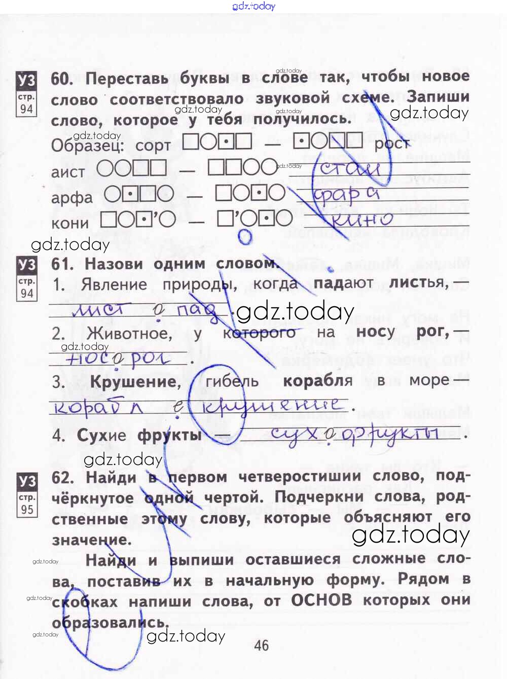 На страницах сайта gdz.today вы найдете учебный и вспомогательный материал, направленный на улучшения знаний школьной программы. ГДЗ - онлайн мир знаний Решение к части 2. Страницы 46 Тетради для самостоятельной работы по Русскому языку для 2 класса Байкова, Малаховская Академкнига 2017