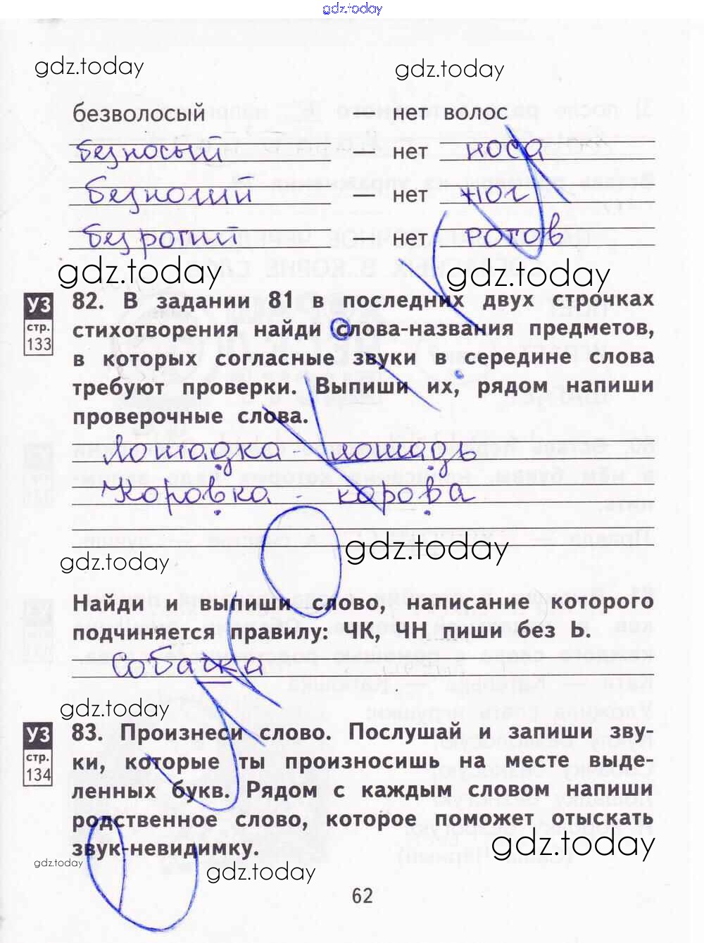 Ответы к Решение к части 2. Страницы 62 Тетради для самостоятельной работы по Русскому языку для 2 класса Байкова, Малаховская Академкнига 2017