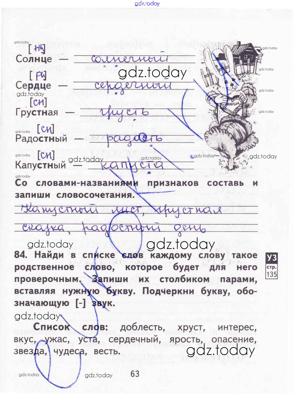 Ответы к Решение к части 2. Страницы 63 Тетради для самостоятельной работы по Русскому языку для 2 класса Байкова, Малаховская Академкнига 2017