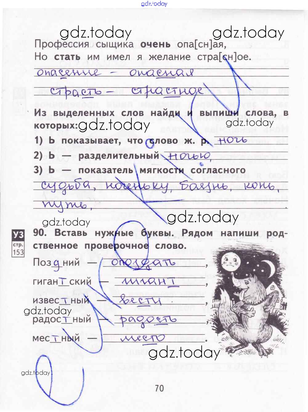 Ответы к Решение к части 2. Страницы 70 Тетради для самостоятельной работы по Русскому языку для 2 класса Байкова, Малаховская Академкнига 2017