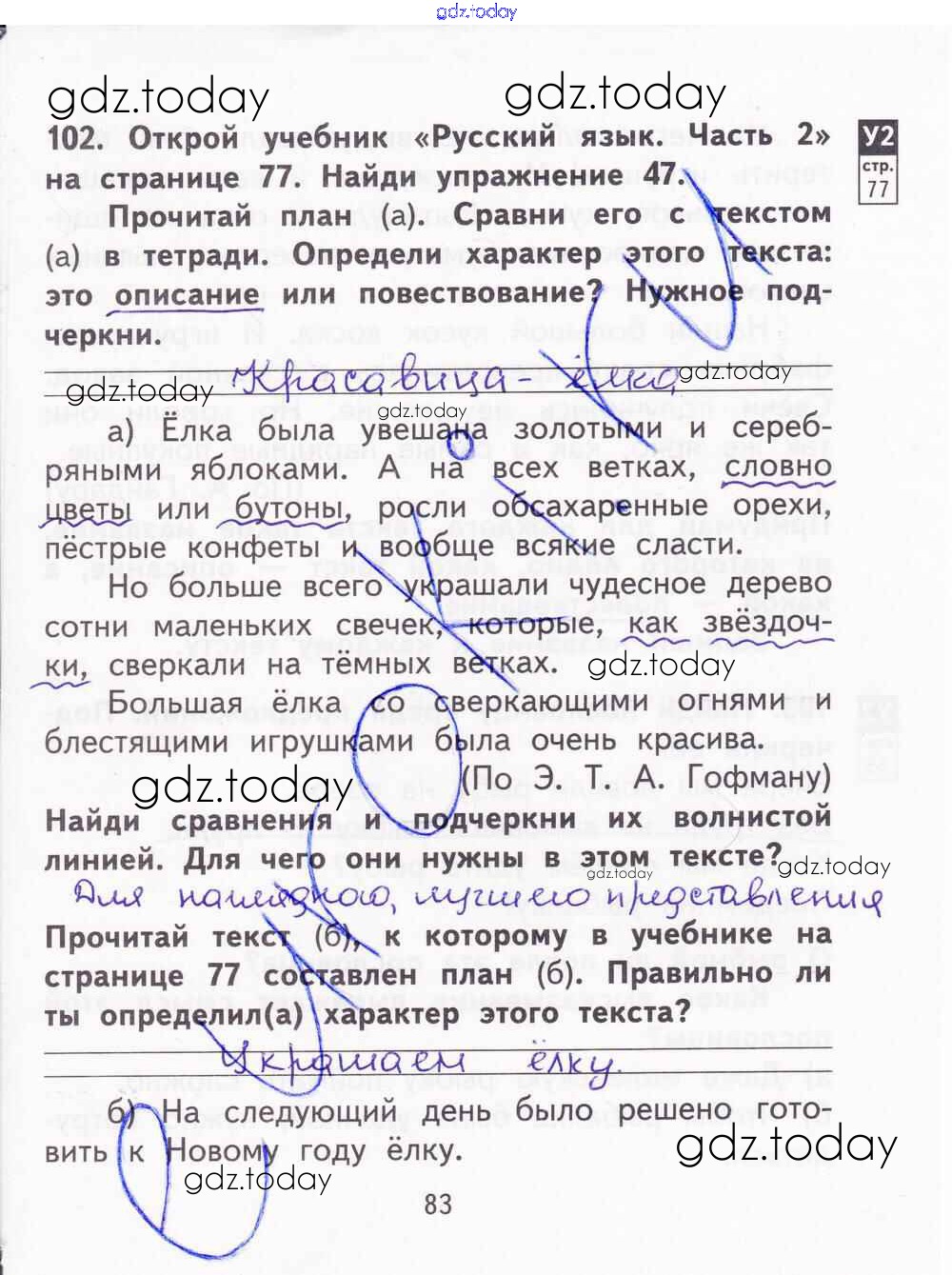 Ответы к Решение к части 2. Страницы 83 Тетради для самостоятельной работы по Русскому языку для 2 класса Байкова, Малаховская Академкнига 2017