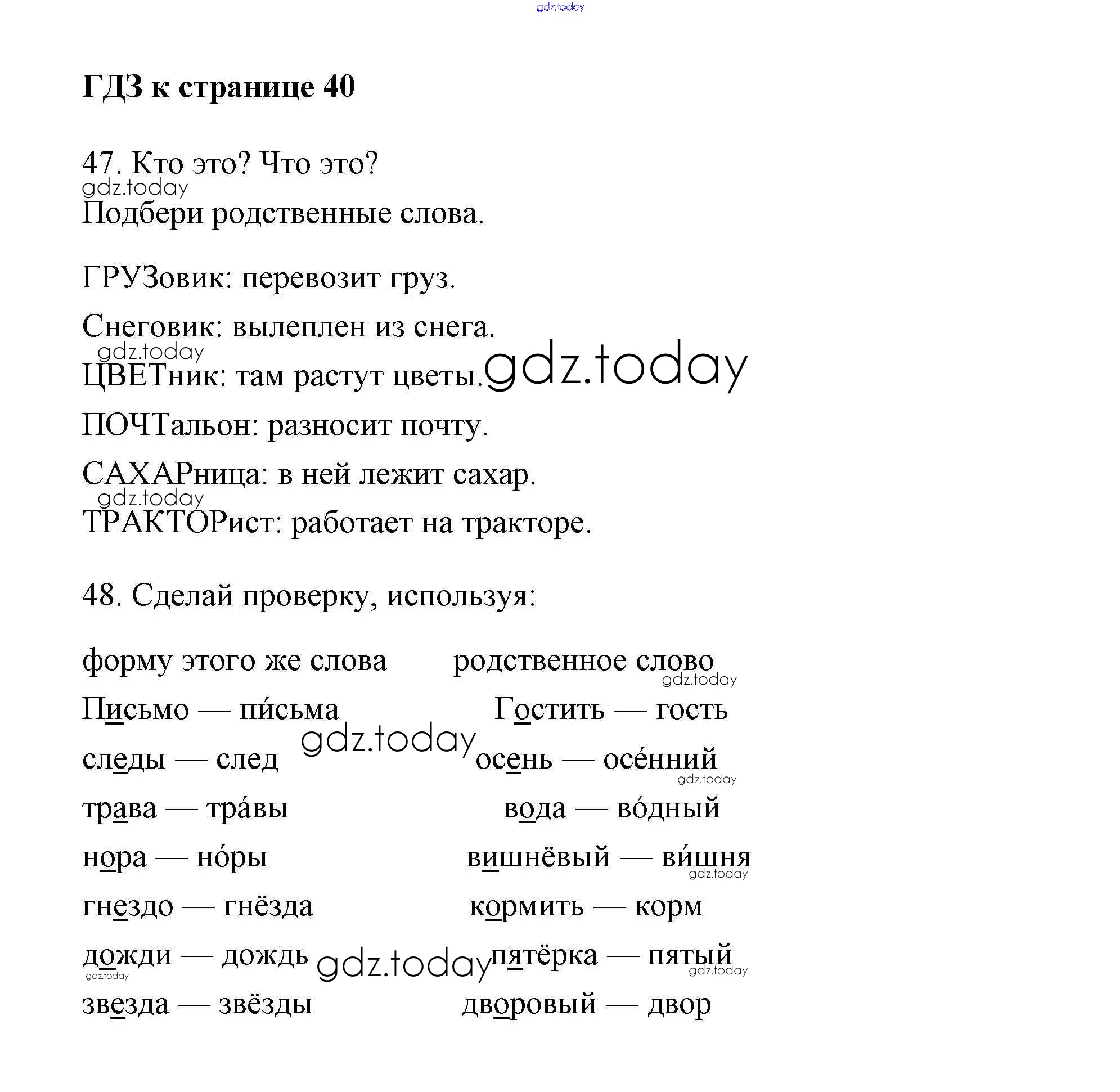 На страницах сайта gdz.today вы найдете учебный и вспомогательный материал, направленный на улучшения знаний школьной программы. ГДЗ - онлайн мир знаний Решение к части 1. Страницы 40 Тетради для самостоятельной работы по Русскому языку для 2 класса Байкова, Малаховская Академкнига 2017