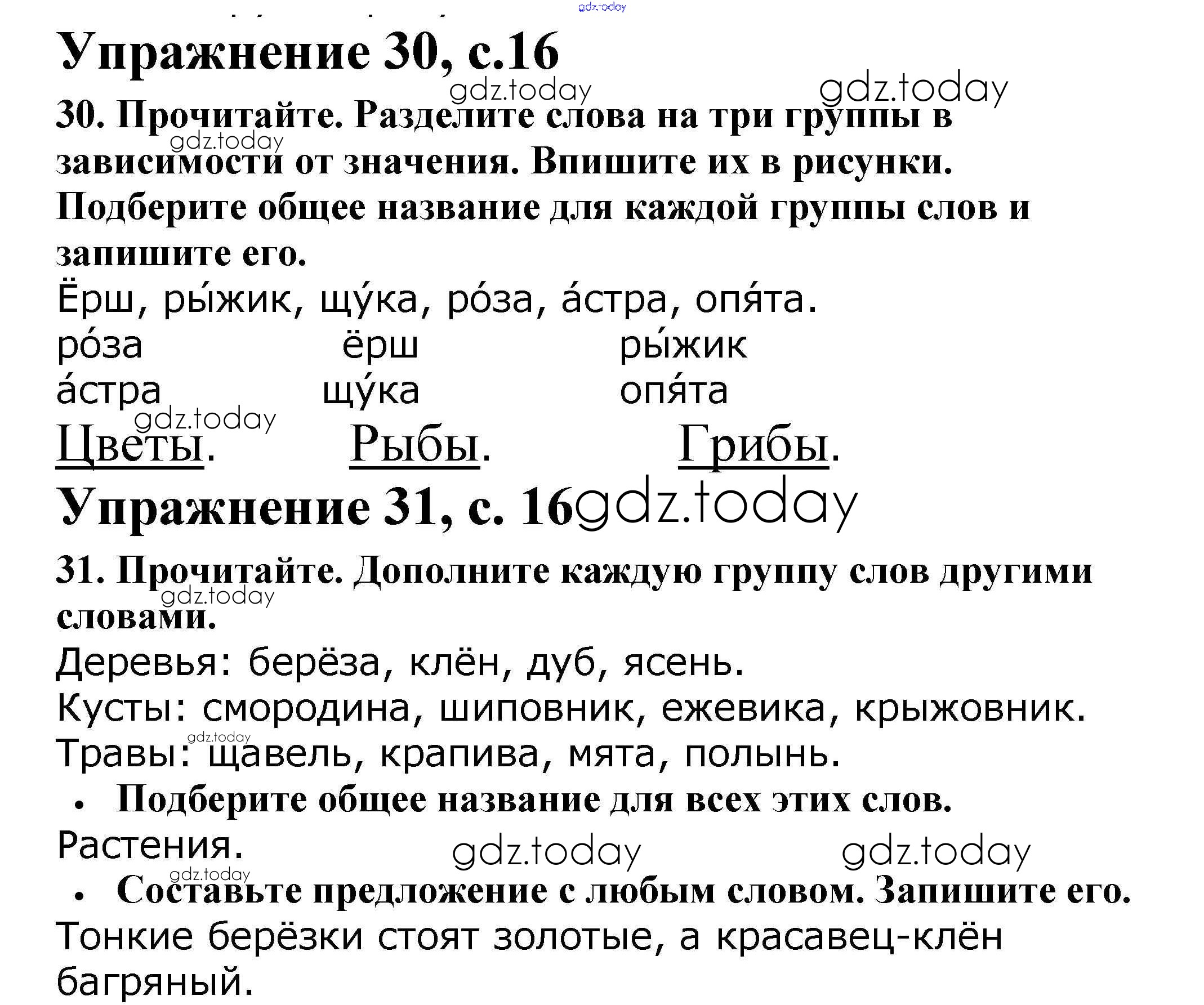 Ответы к Решение. Часть 1. Страницы 16 Рабочей тетради по Русскому языку для 2 класса Канакина Просвещение Школа России 2012