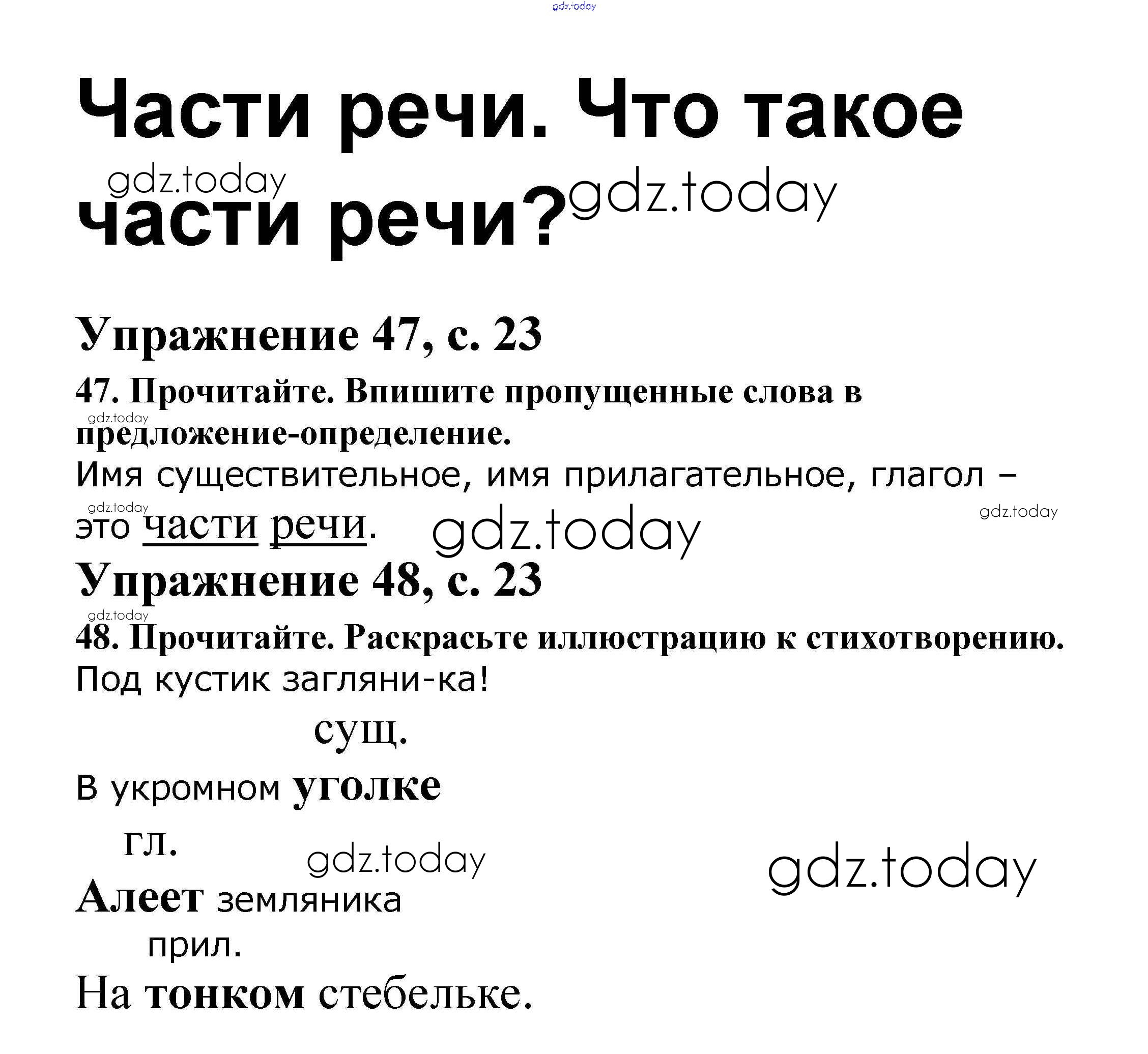 На страницах сайта gdz.today вы найдете учебный и вспомогательный материал, направленный на улучшения знаний школьной программы. ГДЗ - онлайн мир знаний Решение. Часть 1. Страницы 23 Рабочей тетради по Русскому языку для 2 класса Канакина Просвещение Школа России 2012