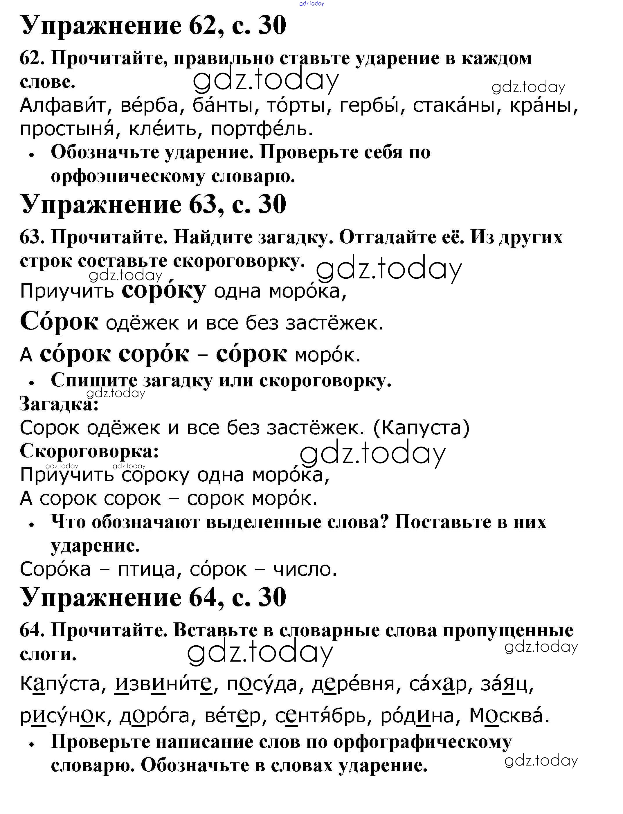 На страницах сайта gdz.today вы найдете учебный и вспомогательный материал, направленный на улучшения знаний школьной программы. ГДЗ - онлайн мир знаний Решение. Часть 1. Страницы 30 Рабочей тетради по Русскому языку для 2 класса Канакина Просвещение Школа России 2012