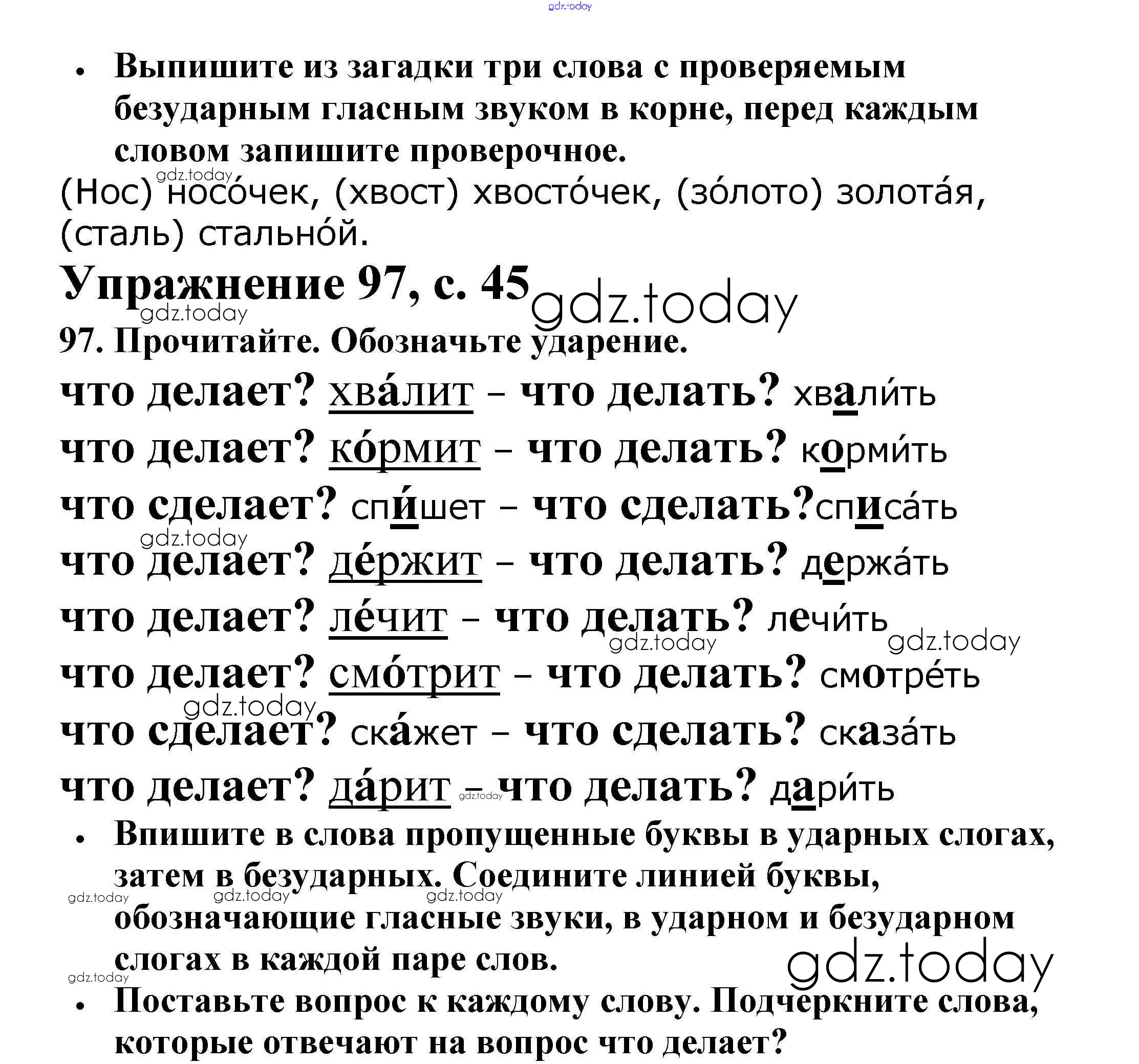На страницах сайта gdz.today вы найдете учебный и вспомогательный материал, направленный на улучшения знаний школьной программы. ГДЗ - онлайн мир знаний Решение. Часть 1. Страницы 45 Рабочей тетради по Русскому языку для 2 класса Канакина Просвещение Школа России 2012