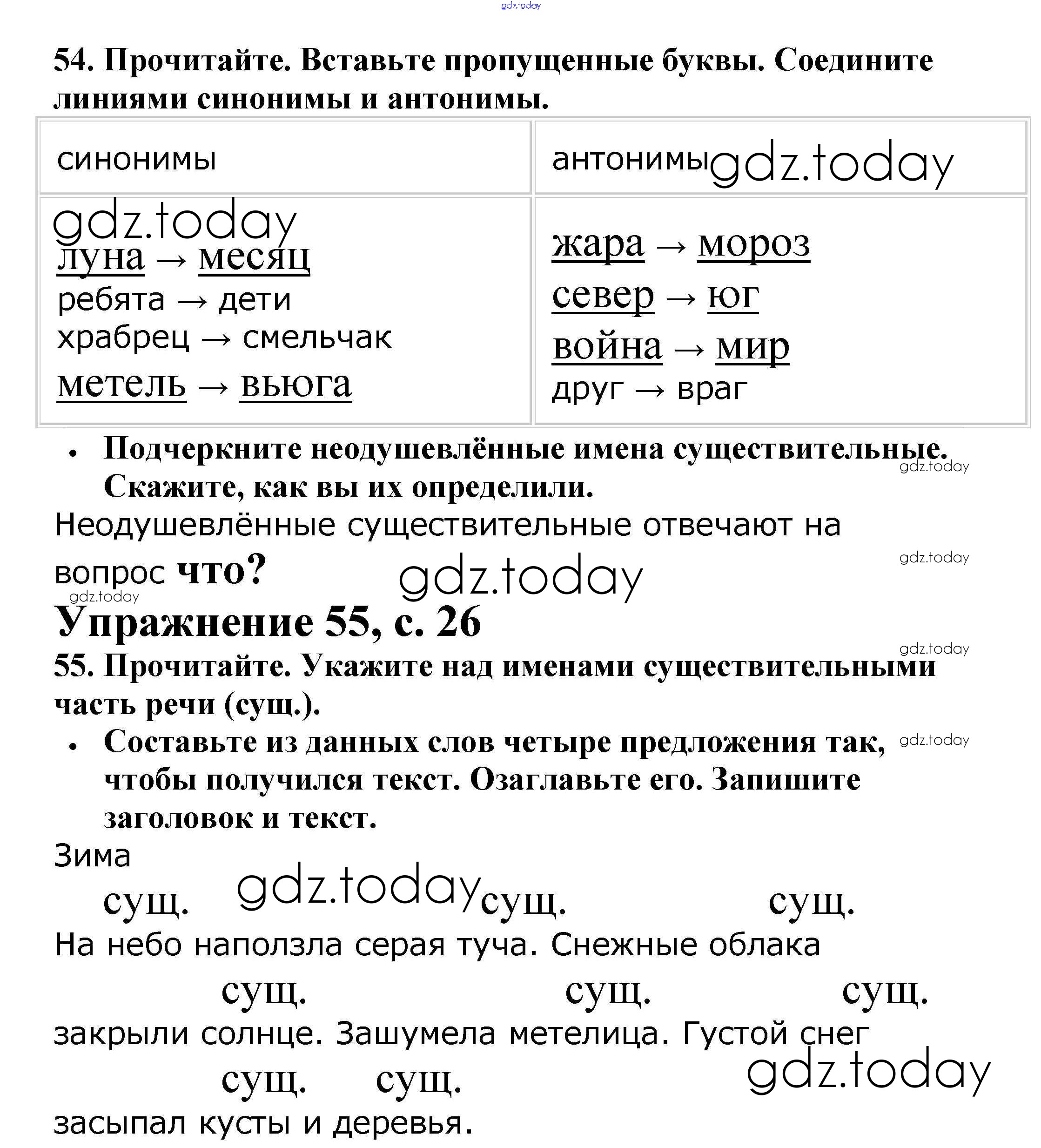 На страницах сайта gdz.today вы найдете учебный и вспомогательный материал, направленный на улучшения знаний школьной программы. ГДЗ - онлайн мир знаний Решение. Часть 2. Страницы 26 Рабочей тетради по Русскому языку для 2 класса Канакина Просвещение Школа России 2012
