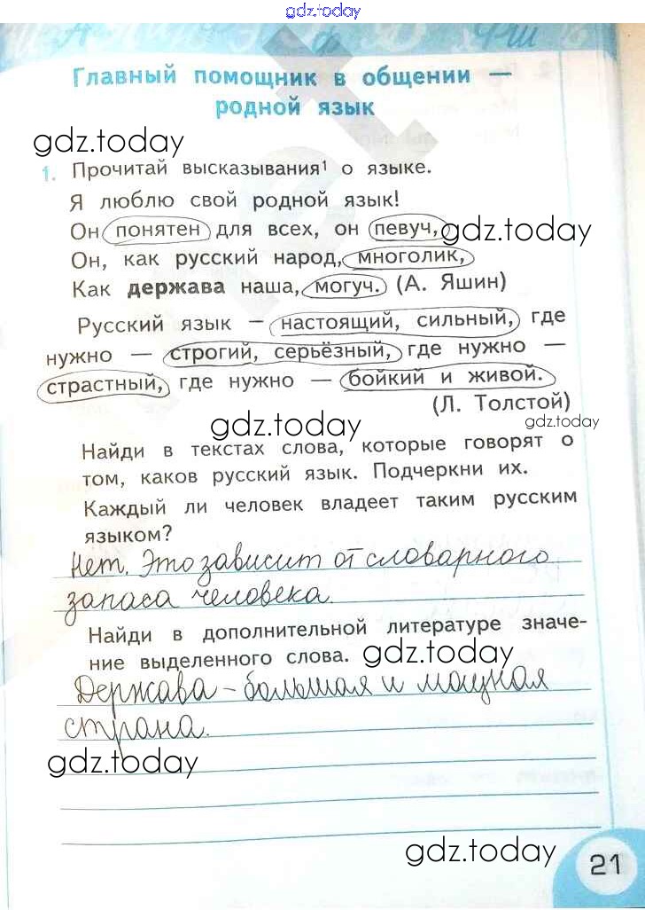 На страницах сайта gdz.today вы найдете учебный и вспомогательный материал, направленный на улучшения знаний школьной программы. ГДЗ - онлайн мир знаний Решение к части 1. Страницы 21 Рабочей тетради по Русскому языку для 2 класса Тихомирова Экзамен УМК 2019