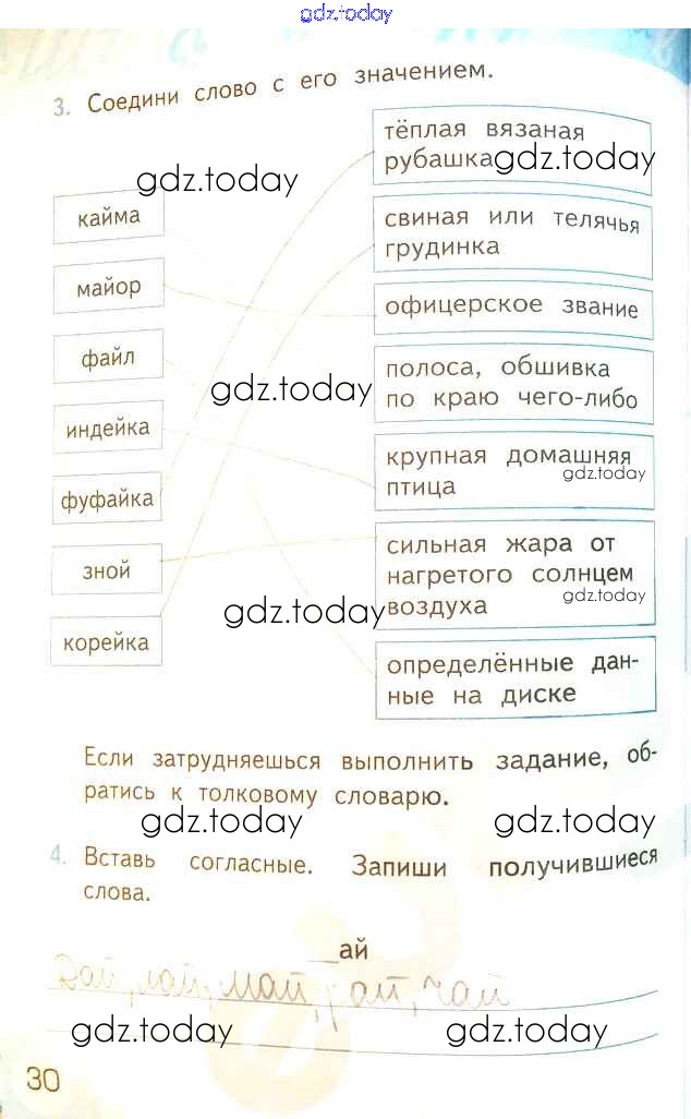 На страницах сайта gdz.today вы найдете учебный и вспомогательный материал, направленный на улучшения знаний школьной программы. ГДЗ - онлайн мир знаний Решение к части 1. Страницы 30 Рабочей тетради по Русскому языку для 2 класса Тихомирова Экзамен УМК 2019