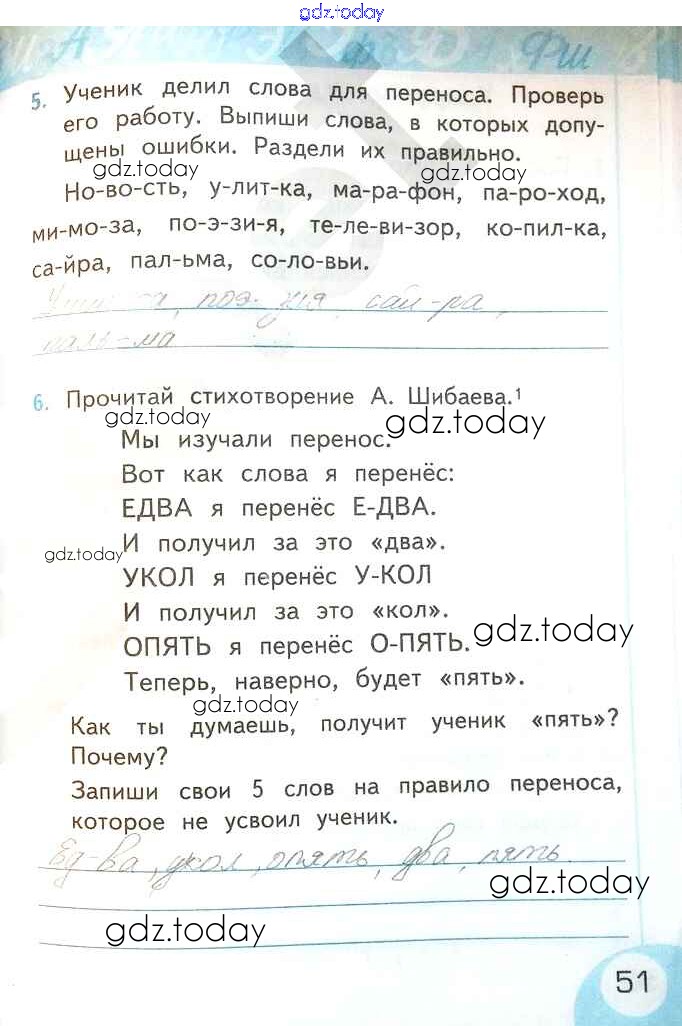 На страницах сайта gdz.today вы найдете учебный и вспомогательный материал, направленный на улучшения знаний школьной программы. ГДЗ - онлайн мир знаний Решение к части 1. Страницы 51 Рабочей тетради по Русскому языку для 2 класса Тихомирова Экзамен УМК 2019