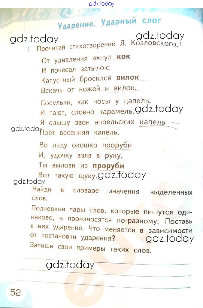 На страницах сайта gdz.today вы найдете учебный и вспомогательный материал, направленный на улучшения знаний школьной программы. ГДЗ - онлайн мир знаний Решение к части 1. Страницы 52 Рабочей тетради по Русскому языку для 2 класса Тихомирова Экзамен УМК 2019