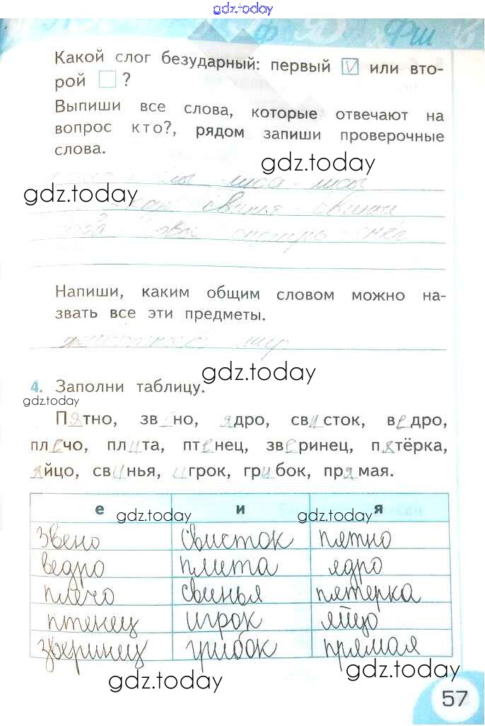 На страницах сайта gdz.today вы найдете учебный и вспомогательный материал, направленный на улучшения знаний школьной программы. ГДЗ - онлайн мир знаний Решение к части 1. Страницы 57 Рабочей тетради по Русскому языку для 2 класса Тихомирова Экзамен УМК 2019