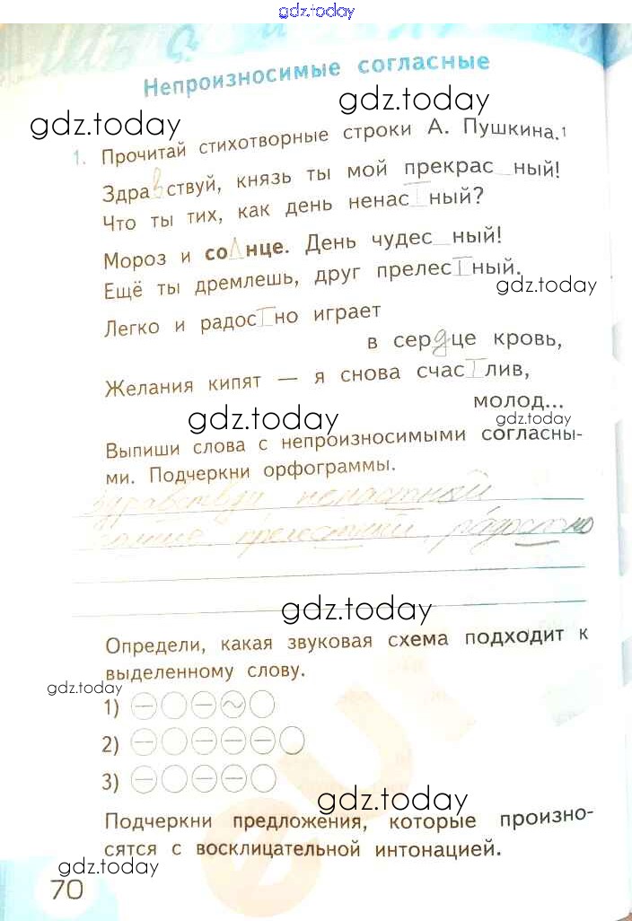 На страницах сайта gdz.today вы найдете учебный и вспомогательный материал, направленный на улучшения знаний школьной программы. ГДЗ - онлайн мир знаний Решение к части 1. Страницы 70 Рабочей тетради по Русскому языку для 2 класса Тихомирова Экзамен УМК 2019