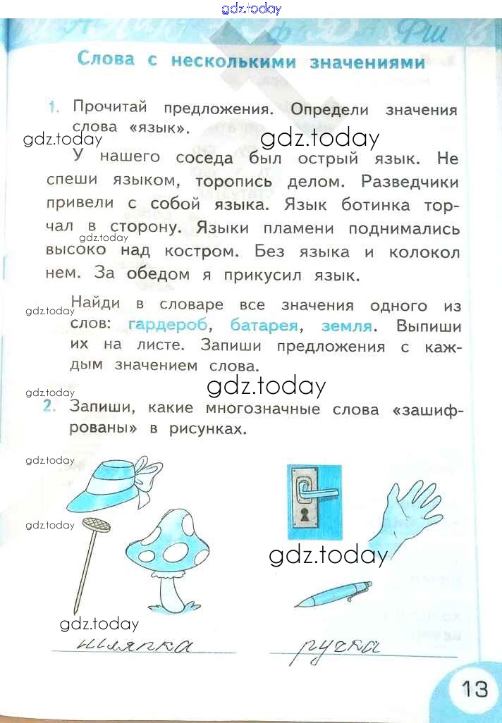 На страницах сайта gdz.today вы найдете учебный и вспомогательный материал, направленный на улучшения знаний школьной программы. ГДЗ - онлайн мир знаний Решение к части 2. Страницы 13 Рабочей тетради по Русскому языку для 2 класса Тихомирова Экзамен УМК 2019