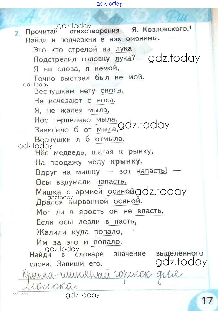 На страницах сайта gdz.today вы найдете учебный и вспомогательный материал, направленный на улучшения знаний школьной программы. ГДЗ - онлайн мир знаний Решение к части 2. Страницы 17 Рабочей тетради по Русскому языку для 2 класса Тихомирова Экзамен УМК 2019