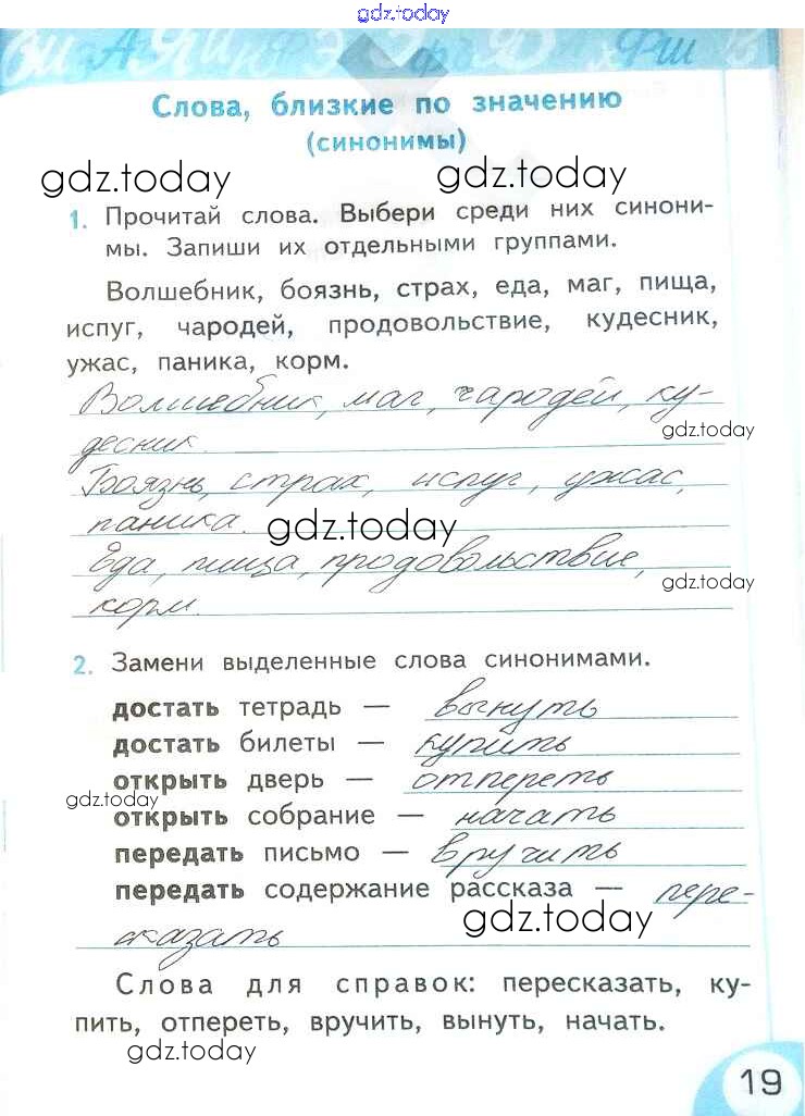 На страницах сайта gdz.today вы найдете учебный и вспомогательный материал, направленный на улучшения знаний школьной программы. ГДЗ - онлайн мир знаний Решение к части 2. Страницы 19 Рабочей тетради по Русскому языку для 2 класса Тихомирова Экзамен УМК 2019