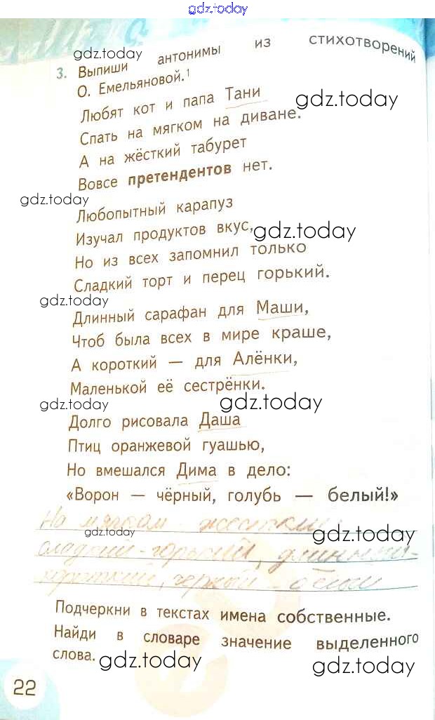 На страницах сайта gdz.today вы найдете учебный и вспомогательный материал, направленный на улучшения знаний школьной программы. ГДЗ - онлайн мир знаний Решение к части 2. Страницы 22 Рабочей тетради по Русскому языку для 2 класса Тихомирова Экзамен УМК 2019