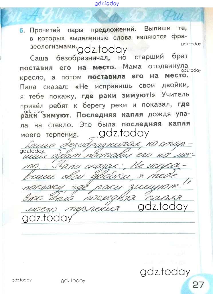 На страницах сайта gdz.today вы найдете учебный и вспомогательный материал, направленный на улучшения знаний школьной программы. ГДЗ - онлайн мир знаний Решение к части 2. Страницы 27 Рабочей тетради по Русскому языку для 2 класса Тихомирова Экзамен УМК 2019
