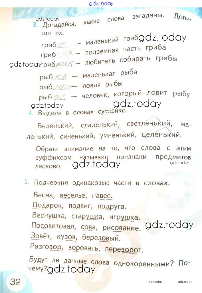 На страницах сайта gdz.today вы найдете учебный и вспомогательный материал, направленный на улучшения знаний школьной программы. ГДЗ - онлайн мир знаний Решение к части 2. Страницы 32 Рабочей тетради по Русскому языку для 2 класса Тихомирова Экзамен УМК 2019